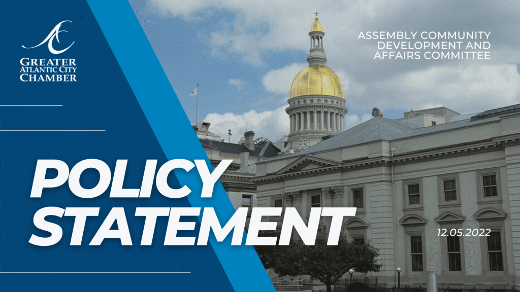 The Greater Atlantic City Chamber provided testimony on Monday, December 5 in support of several Assembly Bills that seek to support the small business community. Those bills are as follows: A573: Establishes expedited construction inspection program A4748: Enhances customer service experience with NJ Business Action Center in Department of State by collecting and disseminating customer […]