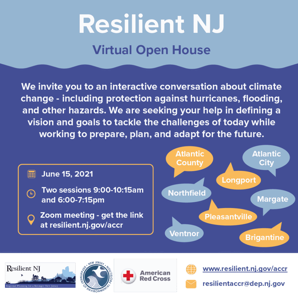 The Atlantic County Coastal Region #ResilientNJ regional resilience and adaptation action plan virtual open house meetings were held on 6/15/2021. If you were not able to join us, please see links below to access recordings of the meetings (same presentation held in morning and evening). We are asking for your help in defining a vision […]