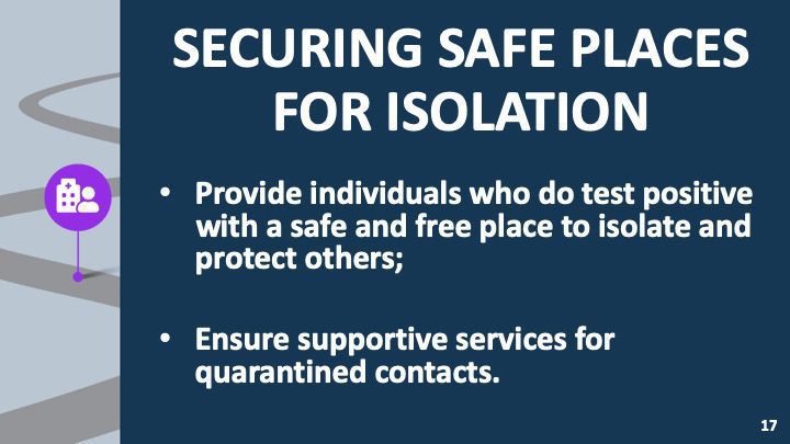 - To the greatest extent possible, provide individuals who do test positive in the future with a safe and free place to isolate and protect others from COVID-19;