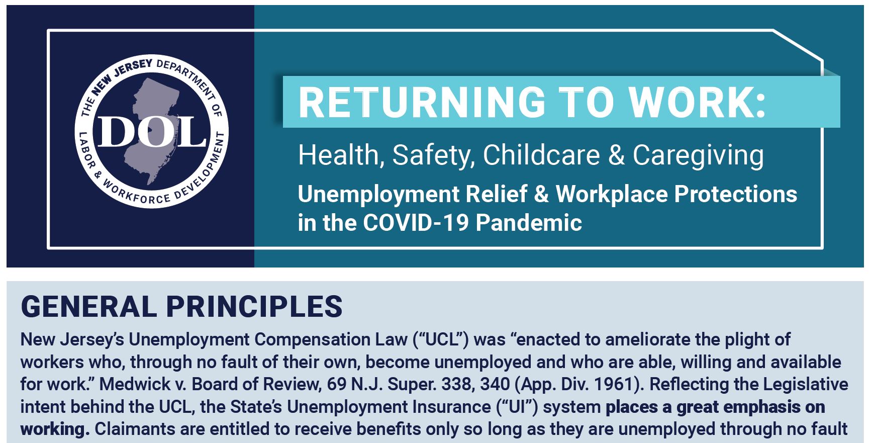 The New Jersey Department of Labor and Workforce Development (NJDOL) has issued unemployment guidance to help New Jersey workers and business owners understand unemployment law as the state’s economy reopens amid the COVID-19 pandemic.